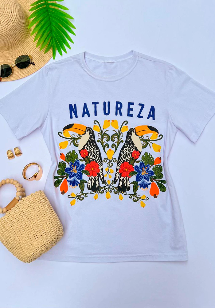 T-shirt Tropical – Camiseta de modelagem soltinha, com gola redonda e mangas curtas. Confortável e versátil, é ideal para compor looks casuais e descontraídos no dia a dia.Tamanho: unico (36 ao 44)Tecido: malhaComposição:100% algodao