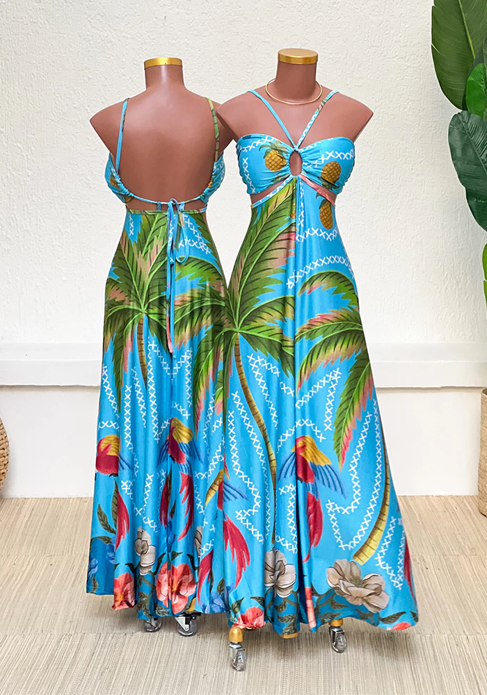 Este vestido longo é muito bonito e elegante. É feito de um tecido chamado fluity, que é muito macio e leve. Ele tem um decote nas laterais, o que significa que tem aberturas na parte de cima perto dos braços. Isso o torna um pouco mais especial e diferente de outros vestidos. Ele é o queridinho da Vistaprime. Tamanho: únicoTecido: Fluity Tamanho: único, do 36 ao 46.