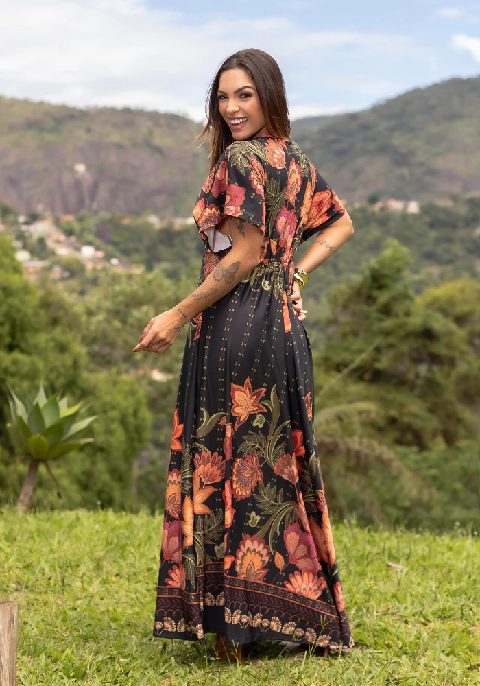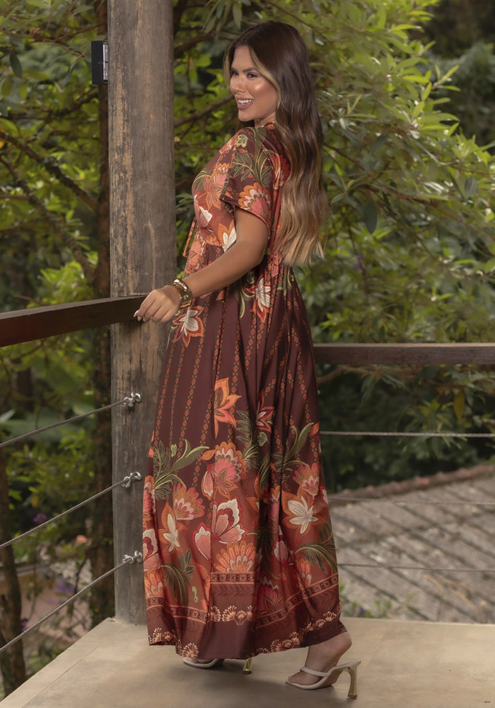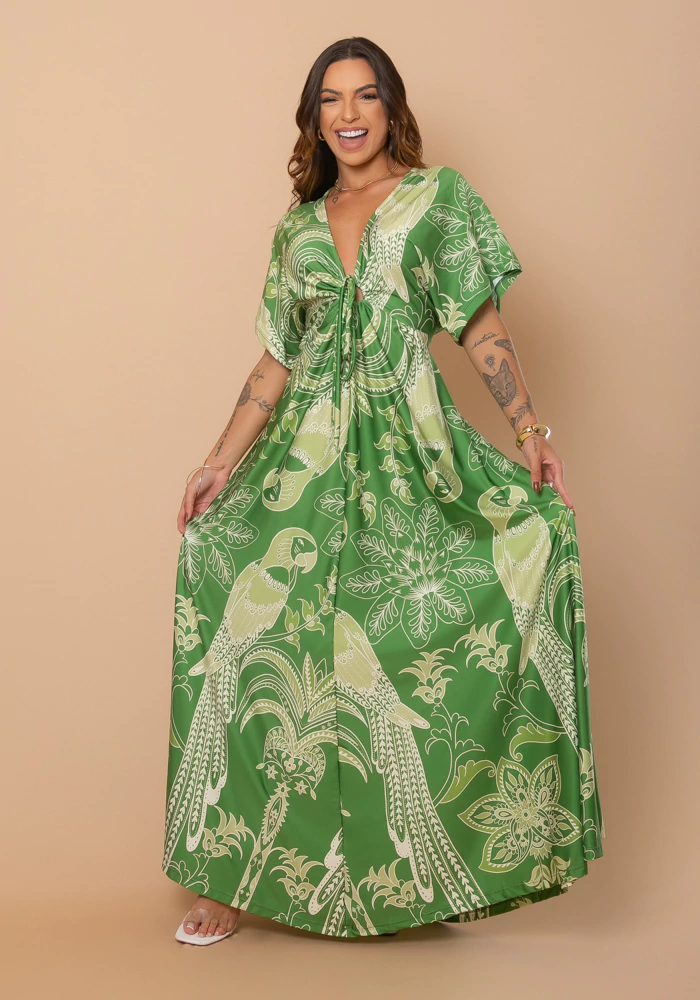 Vestido Jessica, uma peça que combina estilo, elegância e conforto em um só vestuário. Este vestido é perfeito para ocasiões especiais, garantindo que você se destaque com classe e sofisticação.Características do Vestido Jessica:Tecido Fluity de Alta Qualidade: Fabricado com tecido fluity premium, este vestido oferece uma sensação suave ao toque e um caimento impecável. Sua textura leve e fluida proporciona conforto durante todo o dia, permitindo que você se mova com facilidade e graça.Mangas Médias: As mangas médias acrescentam um toque de elegância e sofisticação ao visual. Além de proporcionar cobertura extra aos braços, elas equilibram perfeitamente o design do vestido, criando uma silhueta harmoniosa.Decote em V Profundo: O decote em V profundo acrescenta um toque de sensualidade e feminilidade ao vestido. Ele destaca delicadamente a área do colo, adicionando um charme extra ao visual.Comprimento Longo: Com um comprimento longo, este vestido oferece uma aparência deslumbrante e elegante. Ele é perfeito para eventos formais, festas ou ocasiões especiais onde você deseja impressionar.Tecido: FluityTamanho: Único (38 ao 44)Composição: 95% poliéster+ 5% elastano
